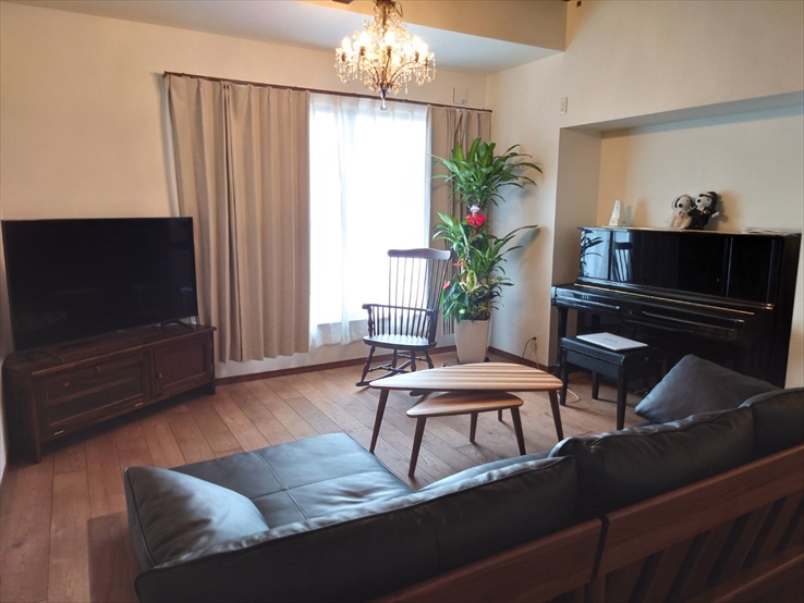 リノベーション工事の完了後にはお気に入りのアンティーク家具・モダンテイストの家具を配置し、快適で自分たちらしい暮らしを実現されています。