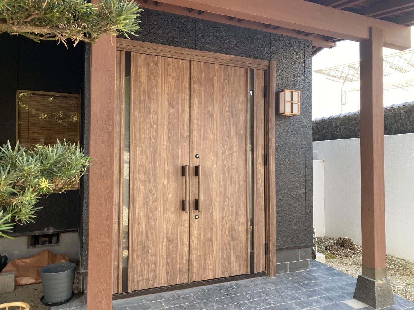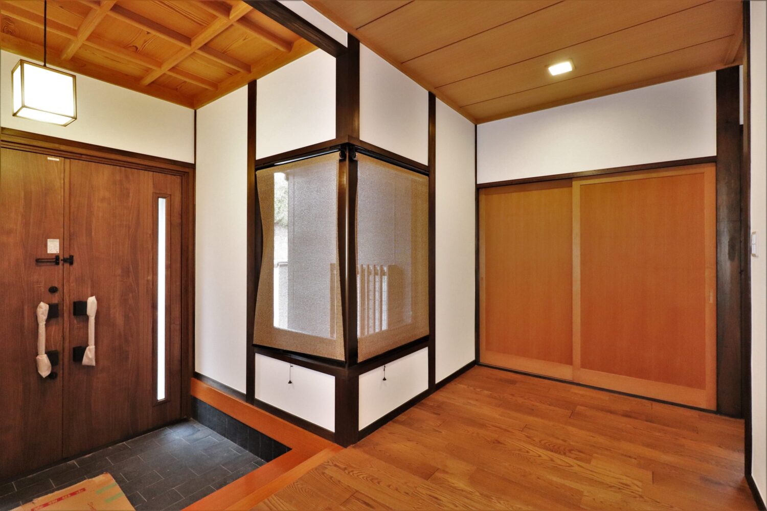引違戸だった玄関は両開き戸に。気密性も意匠性も格段に上がります。転居のとき、お掃除のときに便利です。